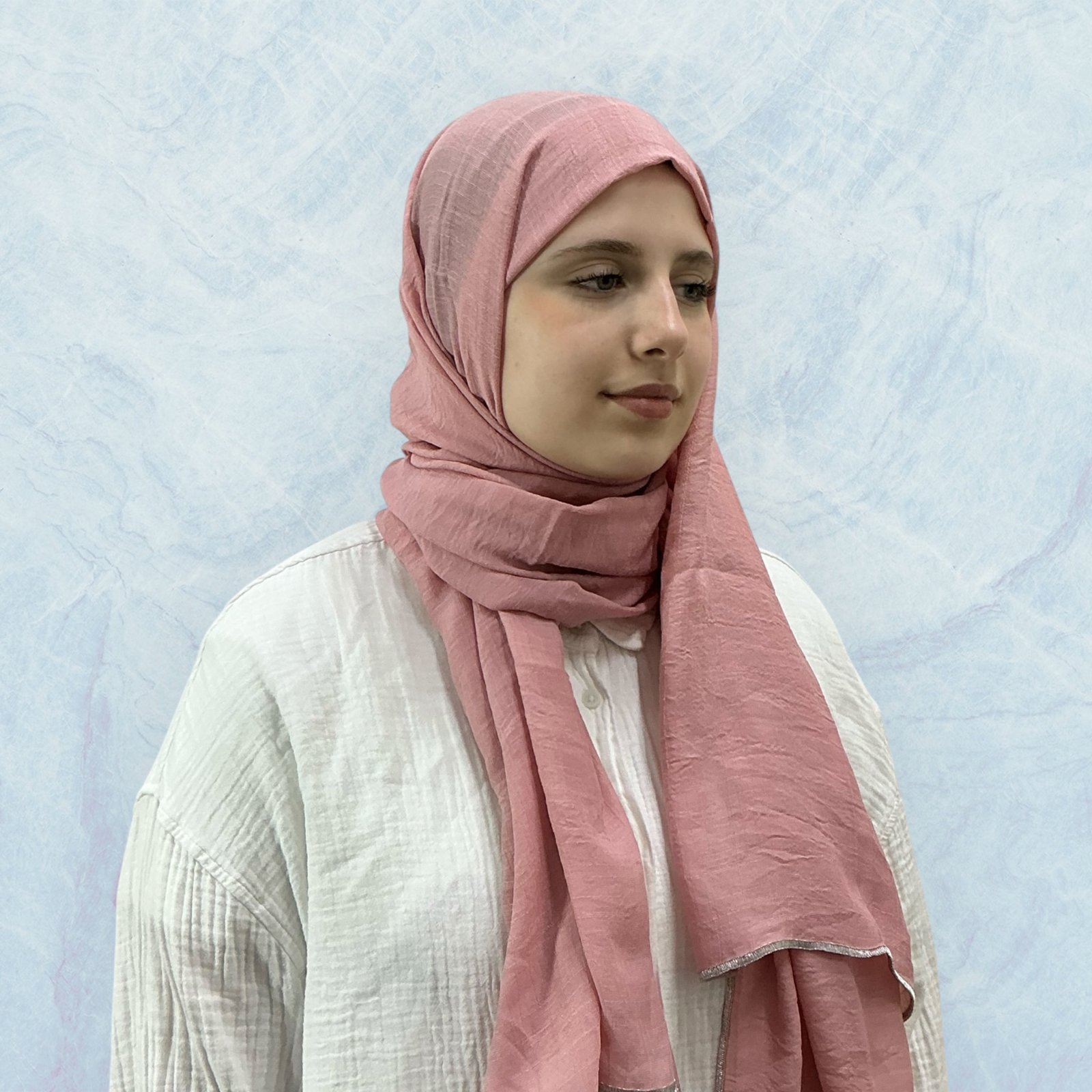 تألقي بإطلالة راقية مع هذا الحجاب المصنوع من قماش اللينن الفاخر، المعروف بخفته وملمسه الطبيعي المريح.