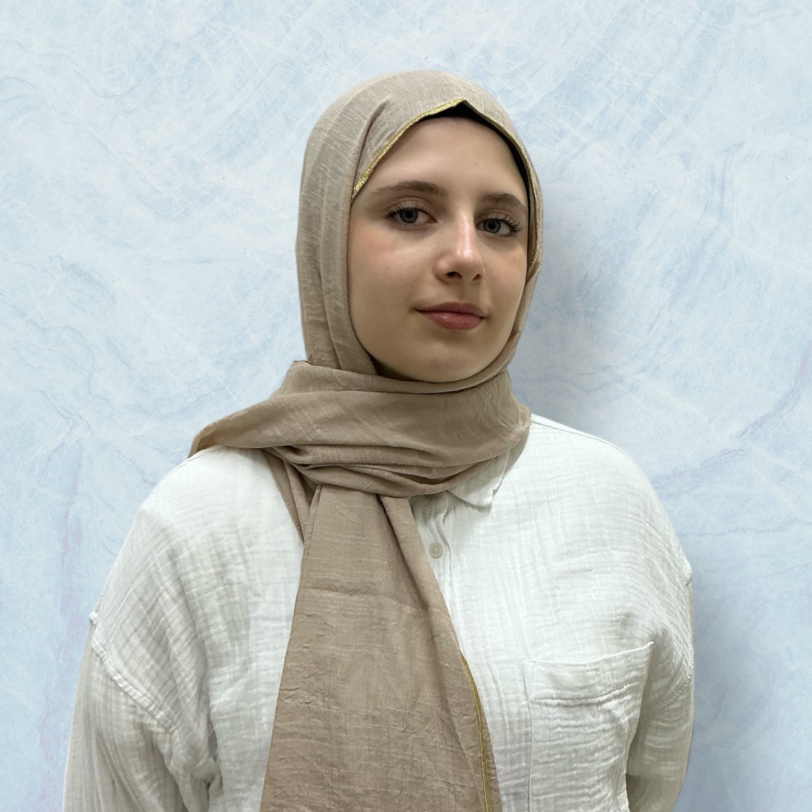 حجاب أنيق مصنوع من قماش اللينن الفاخر، يتميز بخفة وراحة في الارتداء. أضفي لمسة راقية على إطلالتك مع تطريز ذهبي متقن على الأطراف يمنحك مظهرًا عصريًا وفخمًا في نفس الوقت.