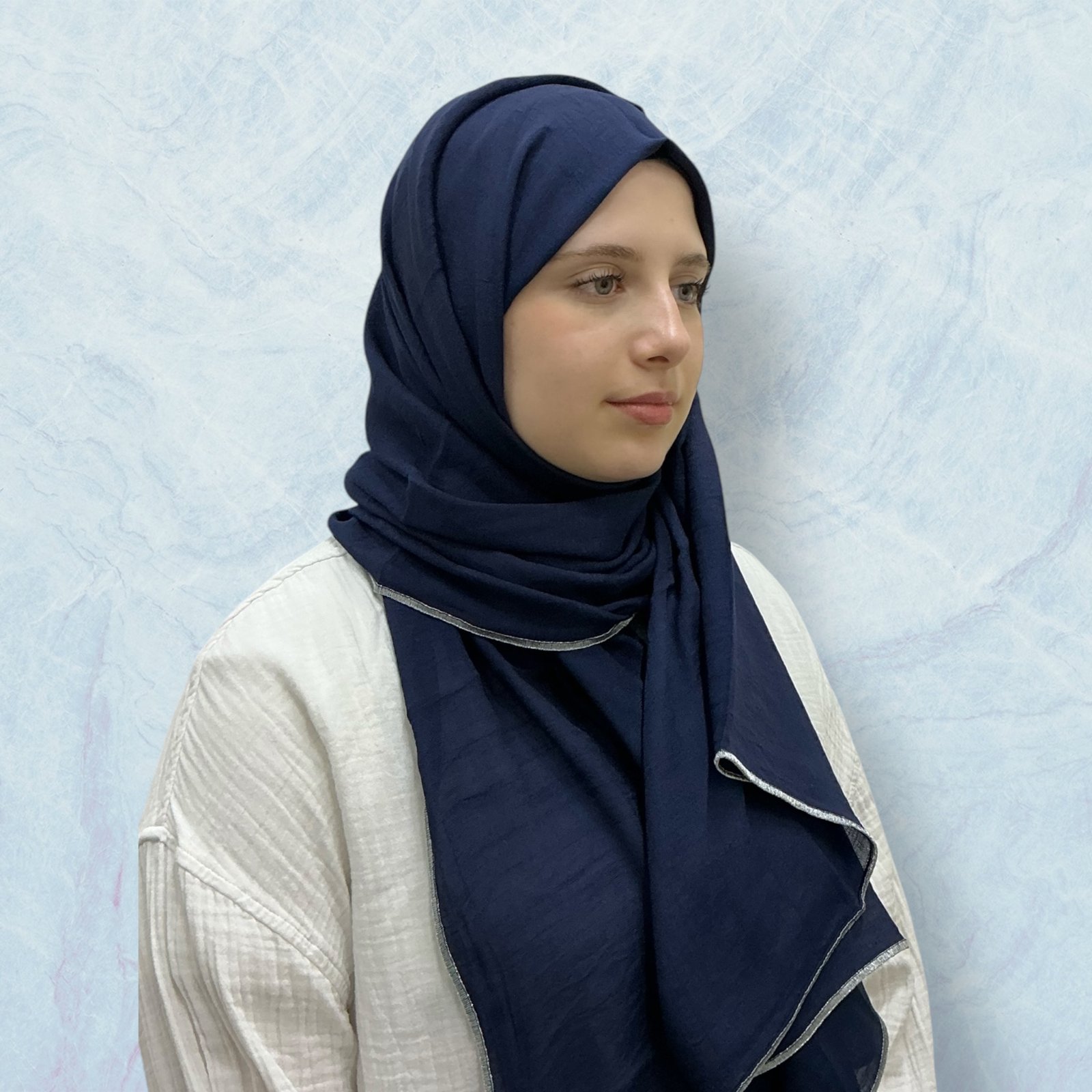 حجاب أنيق مصنوع من قماش اللينن الفاخر، يتميز بخفة وراحة في الارتداء. أضفي لمسة راقية على إطلالتك مع تطريز فضي متقن على الأطراف يمنحك مظهرًا عصريًا وفخمًا في نفس الوقت.